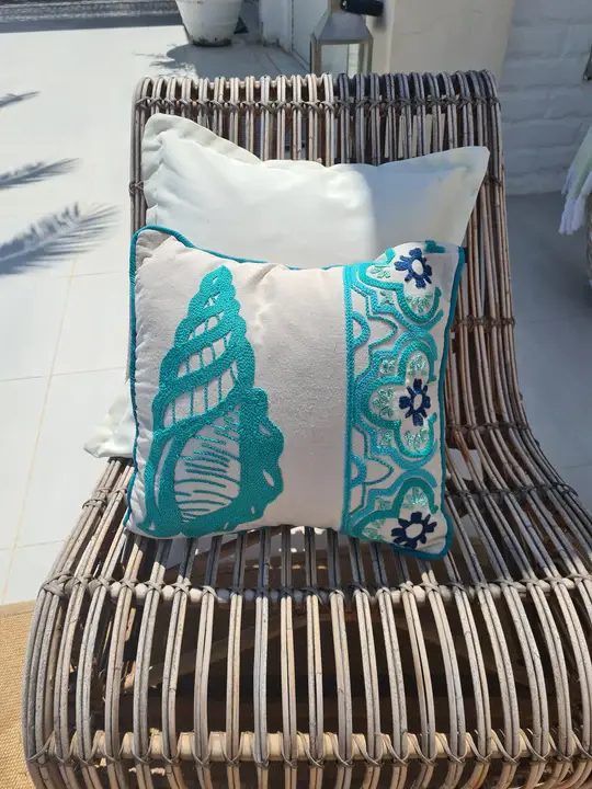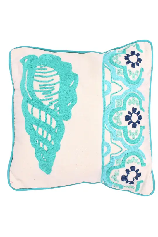 Hand-Embroidered Sea Shell Cushion