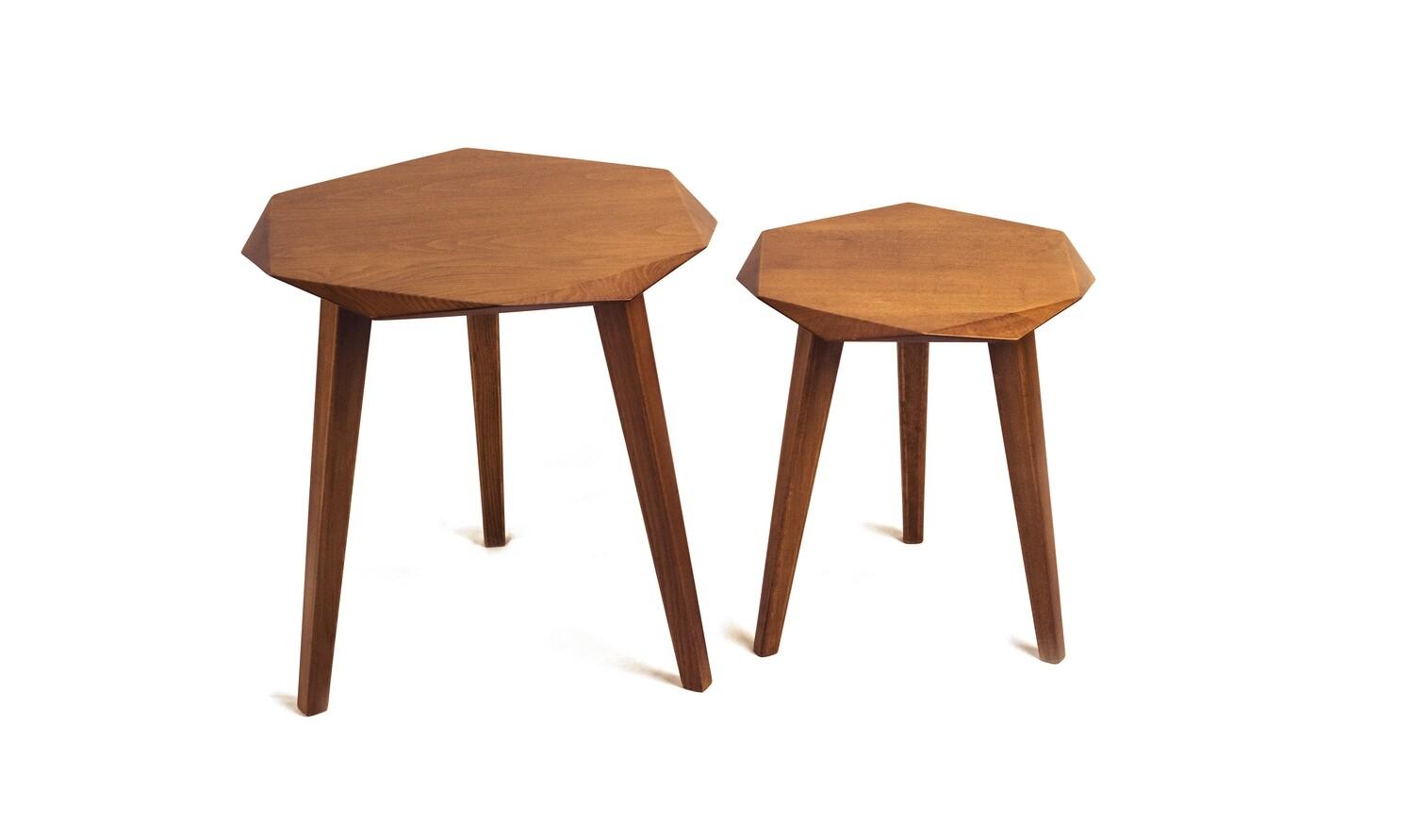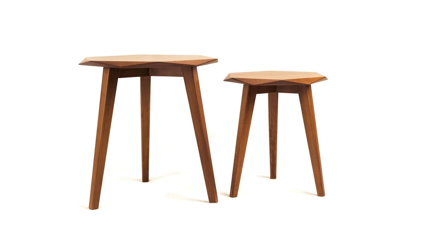 HEXI, a popular geometric design trend in the 60s, comes in mustard, cool teal and plain solid teakwood. Get a single table or a set of two nesting tables, create your own set with your favorite color mix.