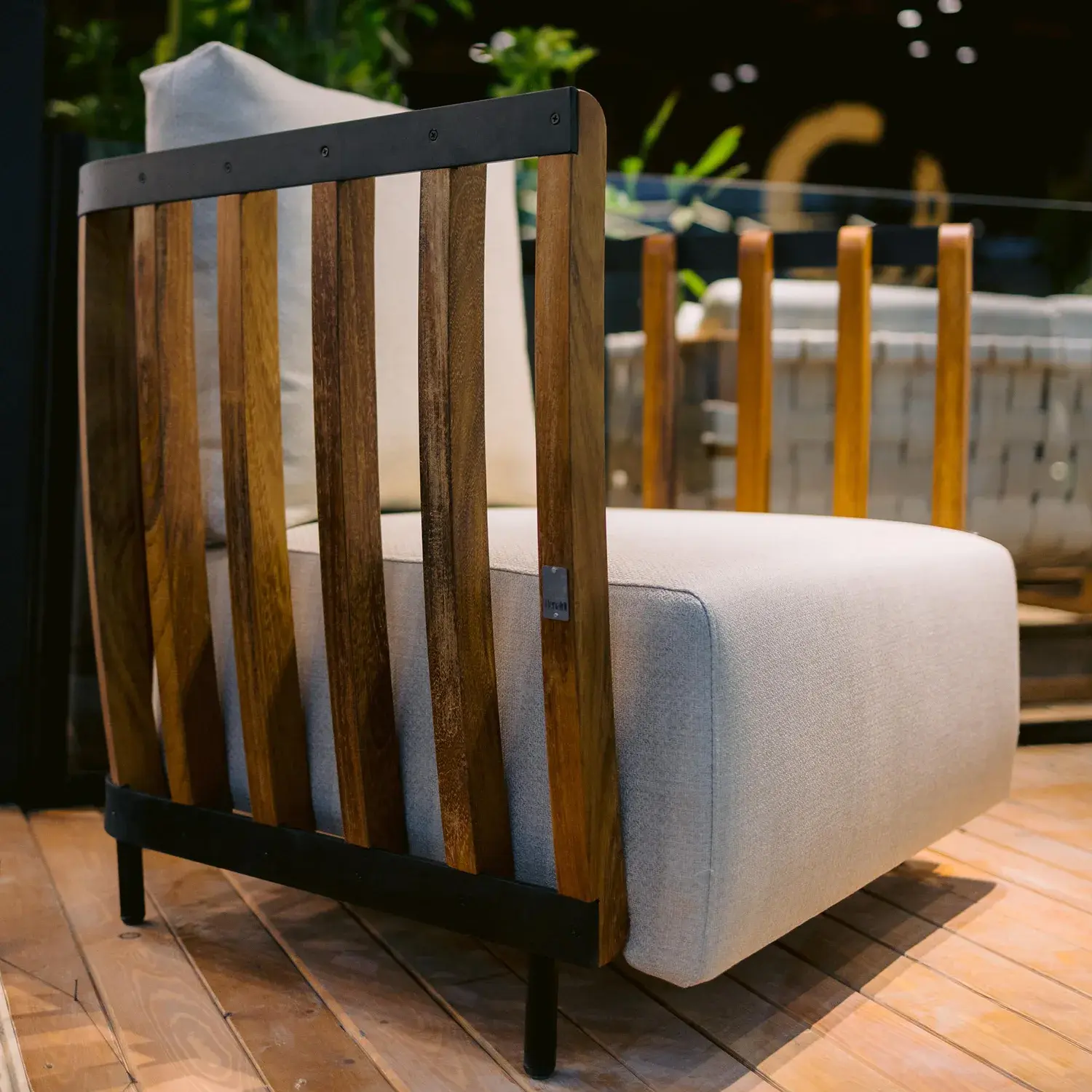 IL sole armchair, crafted from teak wood and aluminum, brings comfort and style to your outdoor space.