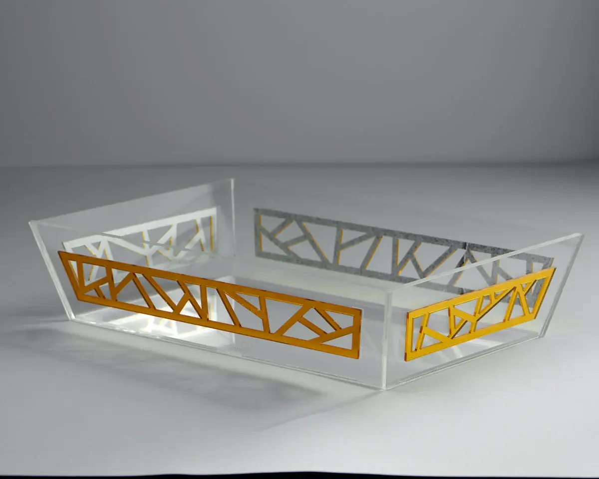 The Irregular Rectangular Fluted Tray by Zee Designs offers a refreshing take on traditional serving trays with its modern fluted edge and asymmetrical silhouette. Crafted from high-quality acrylic and finished in Metallic Gold or Metallic Silver, this tray makes an elegant statement on any surface. Whether you're styling your coffee station, organizing beauty accessories, or presenting sweets and treats during Ramadan or special gatherings, this tray delivers both form and function.