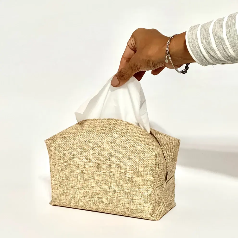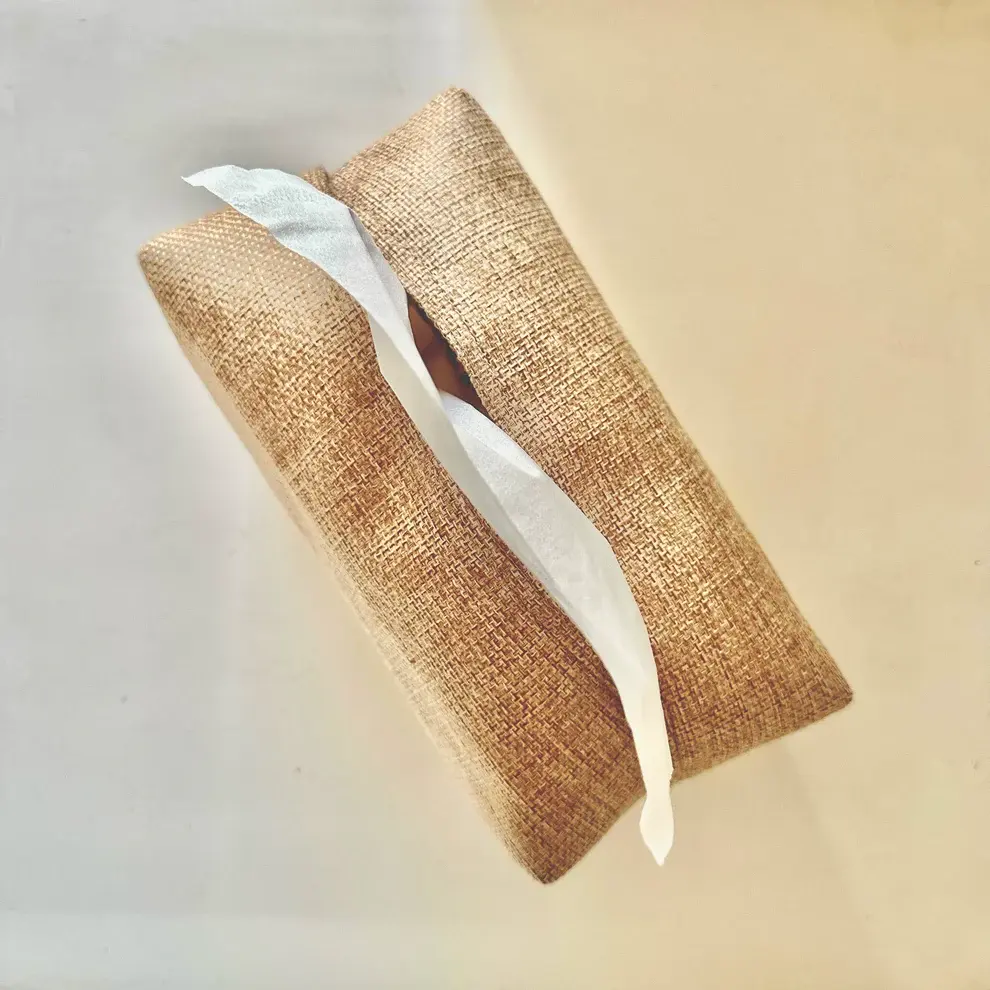 Seeking a portable tissue box solution? Our jute tissue box cover is your answer – minimalistic, lightweight, and adorned in a versatile neutral brown shade. Whether you're on the go, in your car, or by your bedside, this cover effortlessly accompanies you.