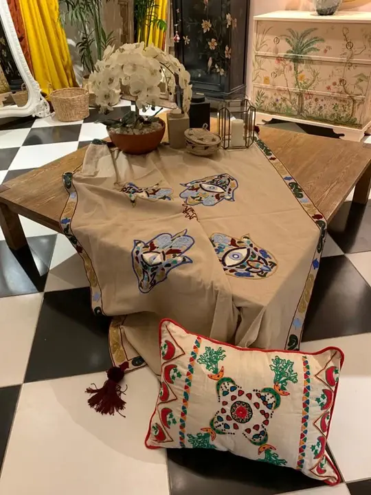 KAF: A Handmade Cotton Tablecloth with Tassels & Pompoms