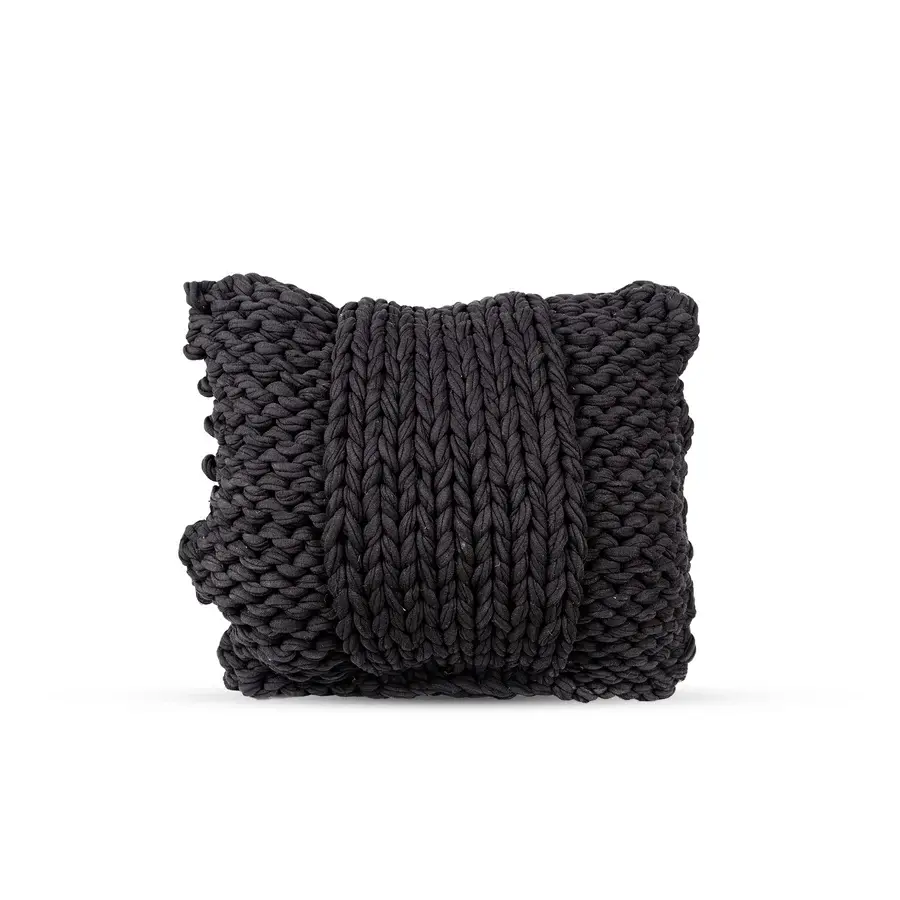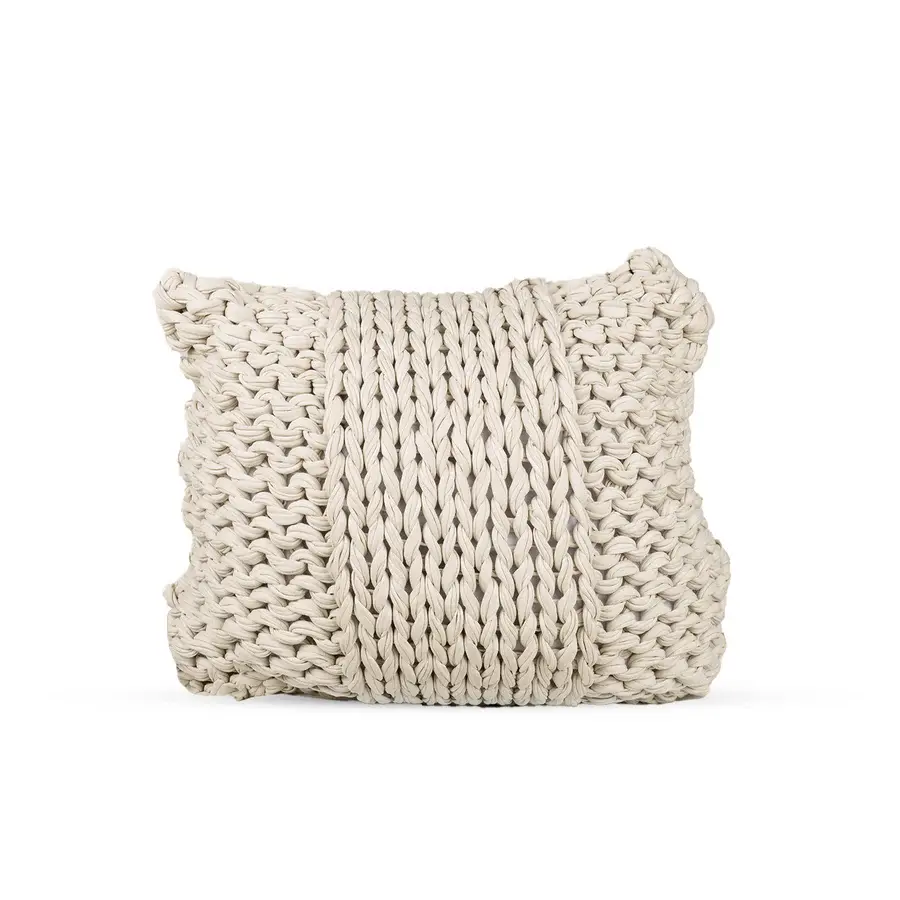 This knitted pillow with a rope design is the perfect addition to your home decor. Its soft and comfortable texture will make you want to snuggle up and relax. Get ready to add a touch of warmth and style to your living space with the CozyKnot Pillow!