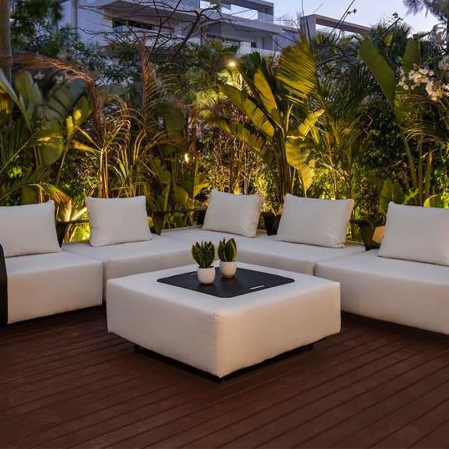 Complete your set with the kobo pouf, available with an aluminum tray for double use- as a comfy set or a functional table