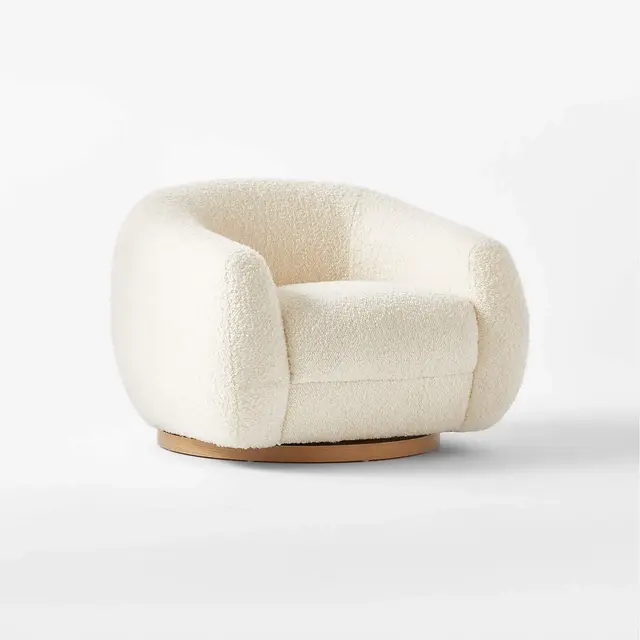 Laszlo apartment chair by Los Angeles-based designer Ross Cassidy strikes the perfect balance between modern style and cloud-like comfort. Floating atop natural oak legs, the curved back hugs a generously cushioned seat. The texture-rich custom boucle features a uniquely fluffy hand for an ultra-plush sit. It's easily one of our most comfortable swivel chairs to date.