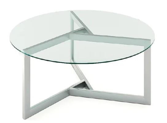 The LC round table is a sophisticated and contemporary coffee table that effortlessly blends elegance and functionality. Its circular glass top, paired with a sleek metal base featuring a unique polygon triangle design, creates a visually striking and modern aesthetic. This table is the perfect addition to any living space, adding a touch of artistic flair and contemporary style .