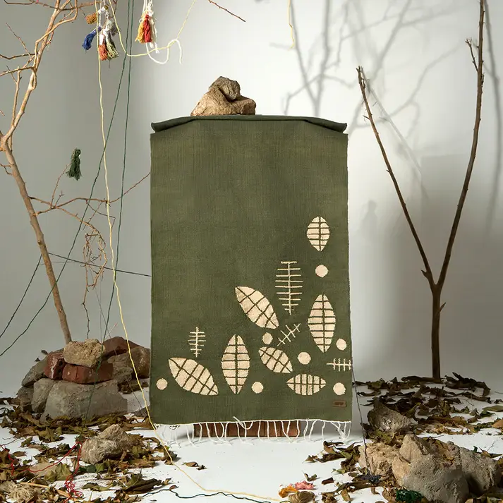 Illustrating the scene of falling leaves on the ground; some are completely dry, revealing only the outline of their inner viens, while others retain a paler hue, with seeds falling haphazardly all around them.