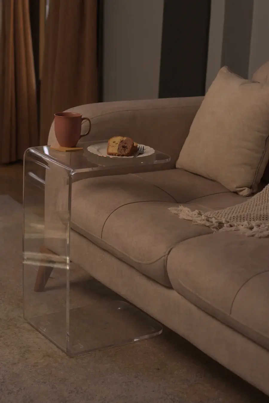 The Lounge Bended Side Table by Zee Designs is a contemporary piece that combines modern design with functional elegance. Made from high-quality clear plexiglass, this side table features a smooth bended structure that flows seamlessly from top to base, offering a sculptural look that works in any interior style. Its transparent body gives it a light visual footprint, making small spaces feel open and uncluttered.