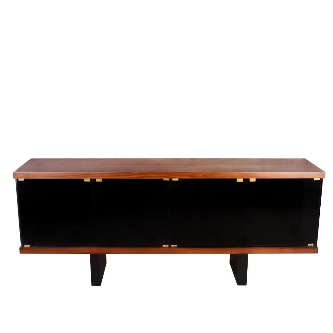 Lucid has a sleek design that combines a taste of refined details. It has wooden frames with tinted glass from the outside and the sides, with very elegant gold “push to open” hinges. The inside features a shelf and a patterned leather diamond shape acts as a decorative back that matches the wooden grains