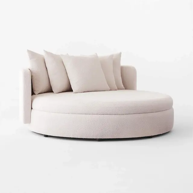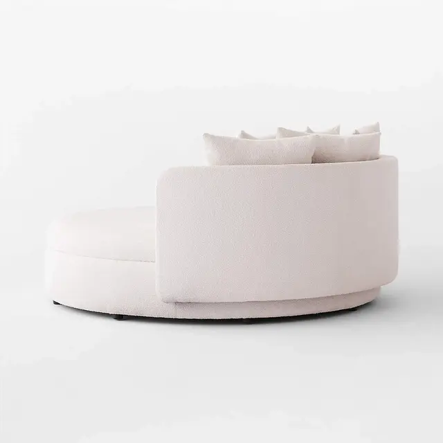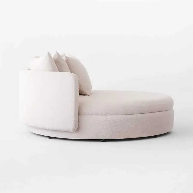Oversized daybed by Gonçalo Campos reimagines the look of outdoor lounging. Generous proportions leave space to stretch out poolside or on the patio, with five throw pillows to sink into. Wrapped in an all-weather solution-dyed boucle, it's a comfortably chic place to while away sun-drenched afternoons or starlit evenings.