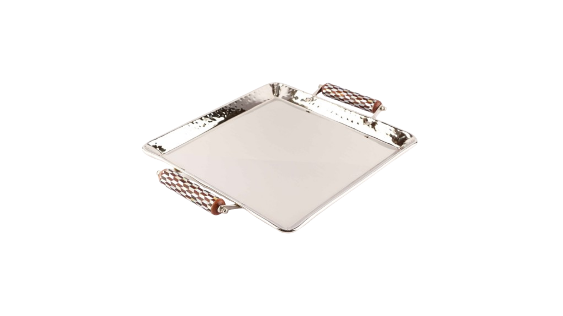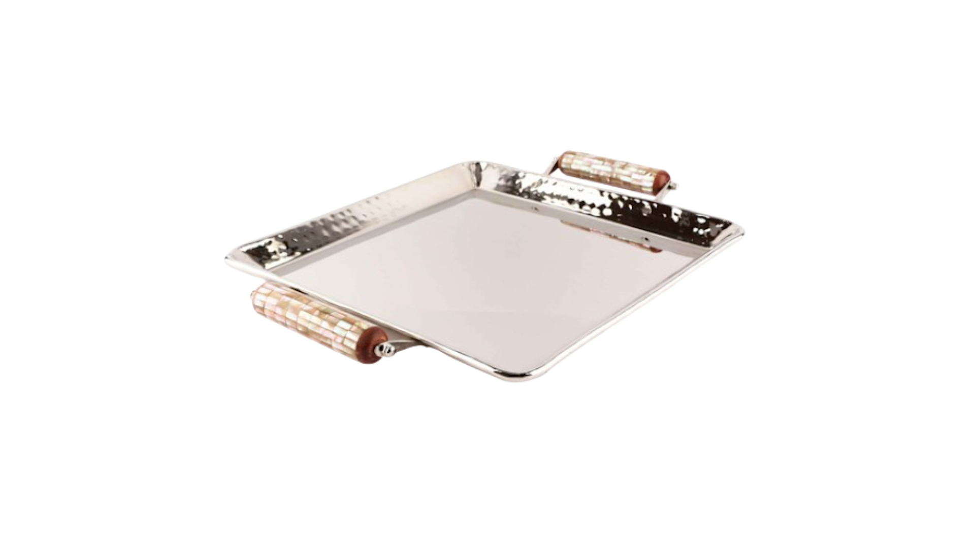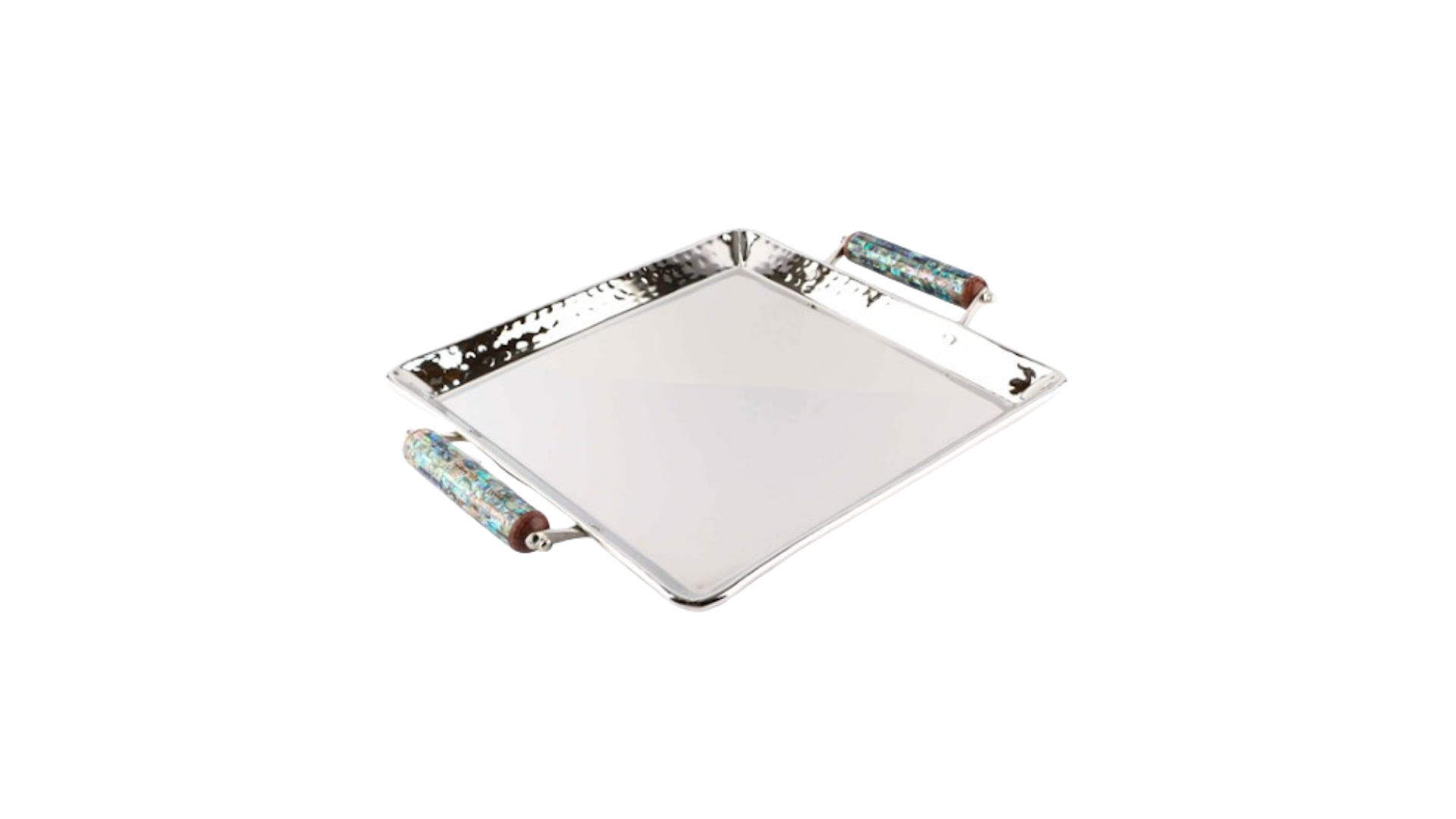 Tray with a (a blue cylindrical shell handle - cylindrical Australian shell handle - cylindrical shell and leather handle)