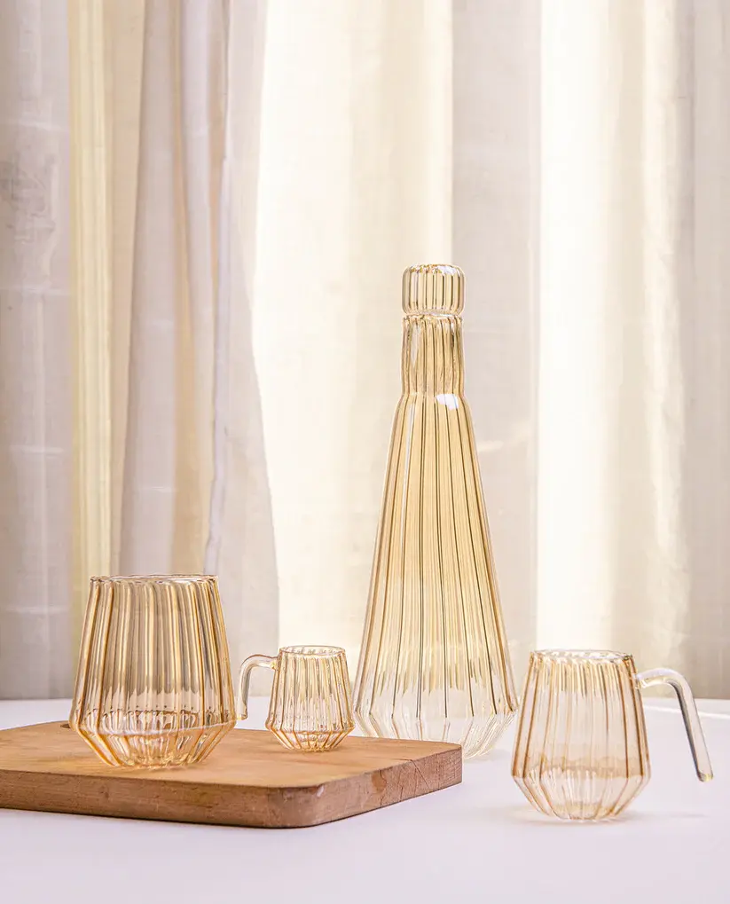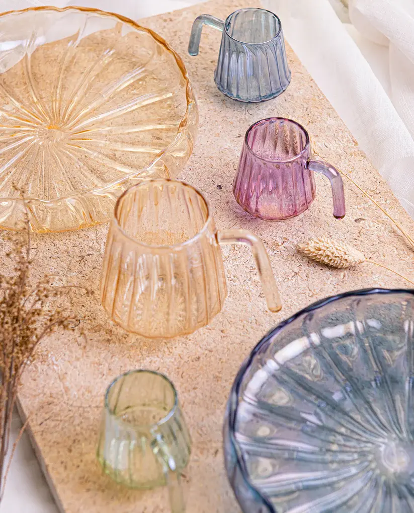 Embrace the tradition of saying “Ya Marhab” and make your visitors feel truly welcomed. Description: Marhab handmade tea cups, from Kelos borosilicate glass. Enjoy your favorite cup of tea with style with this handmade tea cups made from Kelos borosilicate glass. This sophisticated and stylish cup is perfect for everyone without compromising on quality. Colors: Blue - Yellow - Green - Purple Dimensions: H 8 cm Material: Kelos borosilicate Glass