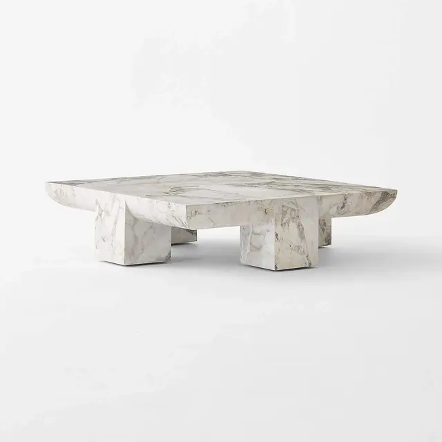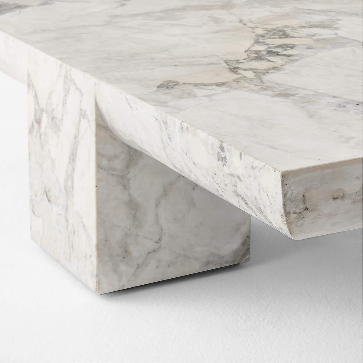 Outdoor coffee table by designer Jerome Byron features honed marble quarried in South America, graced with a stunning interplay of grey, black and white tones. Architectural in form, it's crafted atop a lightweight honeycombed aluminum frame, making the table both durable and easy to reposition. Due to the nature of stone, Barcelona marble will have unique activity and veining that makes each piece one of a kind.