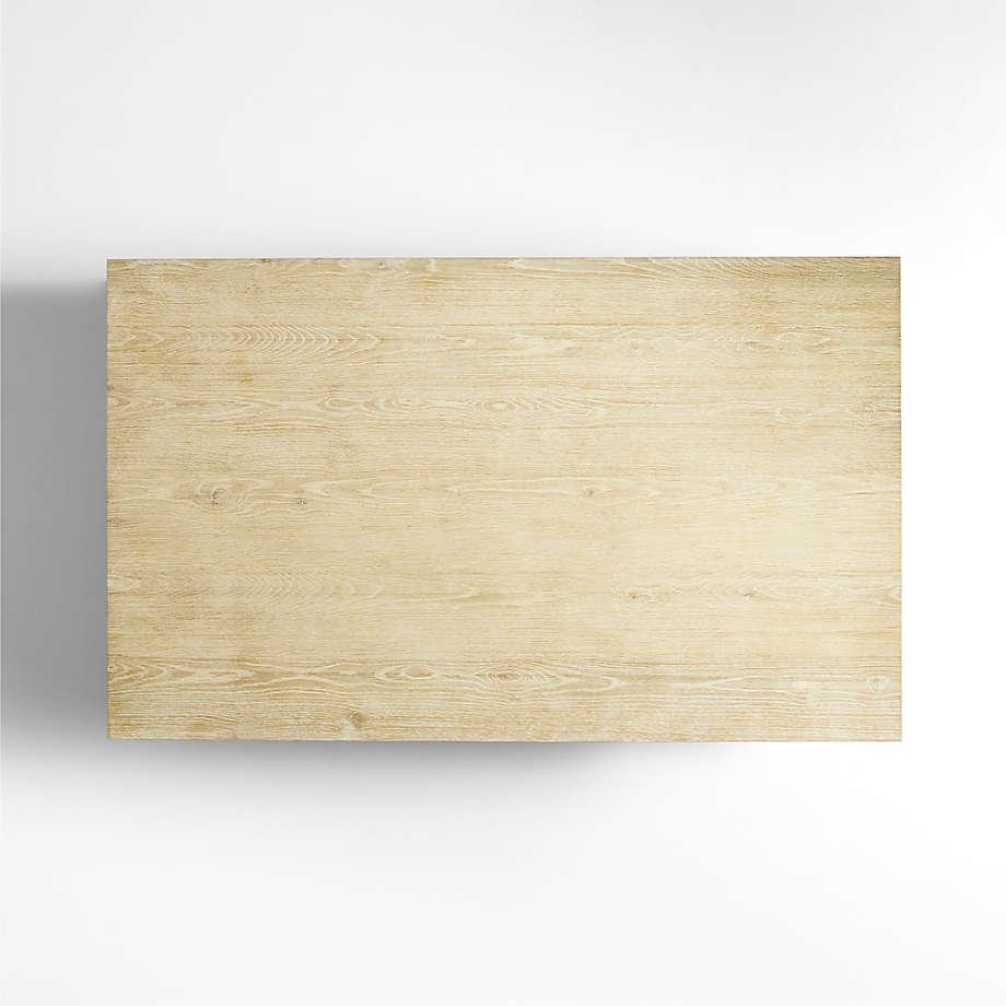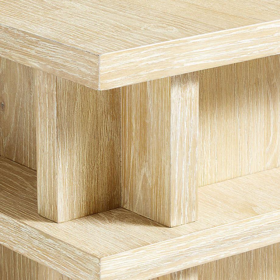 Any way you look at it, our Maze coffee table has something to offer. The architectural design is meant to be viewed at any angle, its planes offset and intersecting to create open cantilevered shelves on all four sides. Made with white oak veneer that's been wire brushed and given an ivory ceruse finish, the rectangular table sits low yet floats on a recessed plinth and is generously sized to host a curated selection of art books and collected objects.