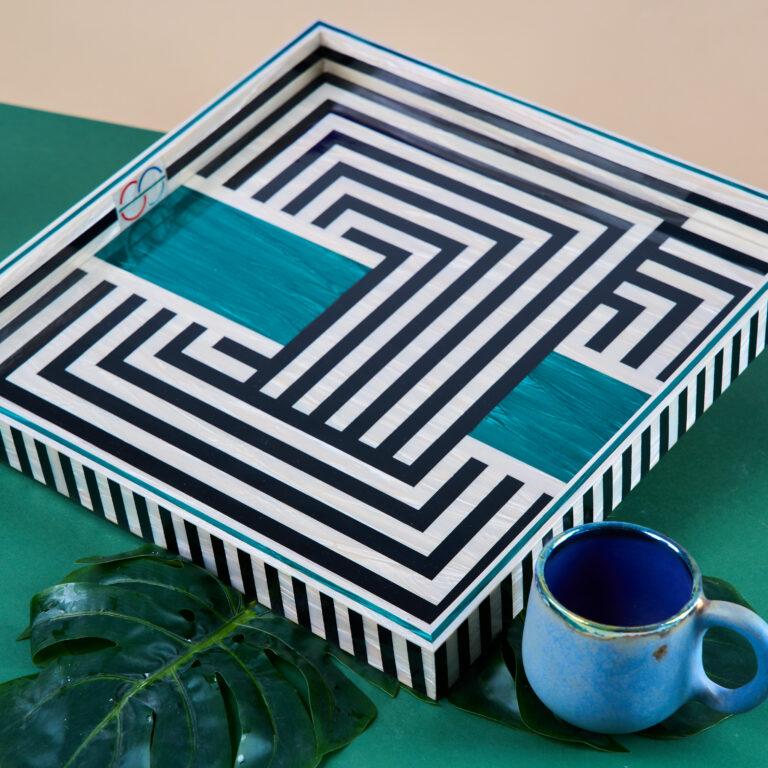 Highest quality of wood with glossy finish inlaid with mixture of mother of pearl and acrylic