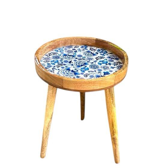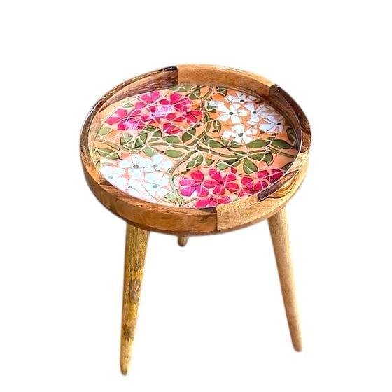 Create a masterpiece in your room with our Handmade side table collection, hand crafted by artisans. Modern elegance will uplift the entire décor of your room. Tastefully designed and 100% handmade in mango wood – a true masterpiece that can be used as a side table, tray table, drinks table, small coffee table or simply to elevate a corner. The sturdy legs are handcrafted from specially treated mango wood and designed to attach/detach in seconds without any tools – a true game changer for portability and ease of storage. The mango wood top is enamel printed in several gorgeous designs and coated with resin for a pristine finish that is made to last! Handmade by expert artisans from start to finish, the table is designed to highlight the natural character and grains of wood giving your room the elegant touch. Disclaimer:All our products are handmade resulting in minor variations in each product giving them a unique identity. Minor imperfections and variations may exist due to the inherent nature and structure of wood Care Information · Wipe clean with a damp cloth · Do not use chemicals or abrasives · For Internal use only, although our special epoxy finish provides glass like water proofing Material: Wood & sticker with enamel Size : H- 18 inch D- 13 inch Finished: polished