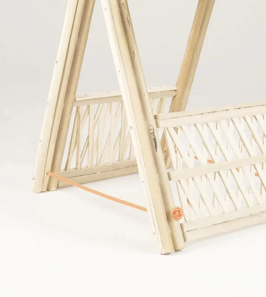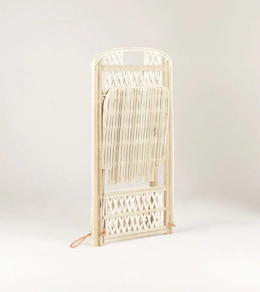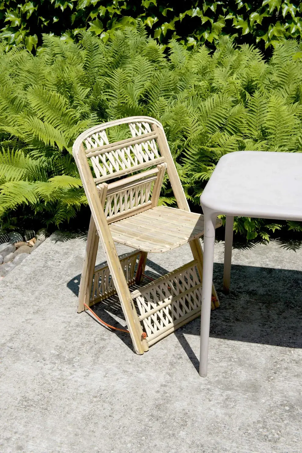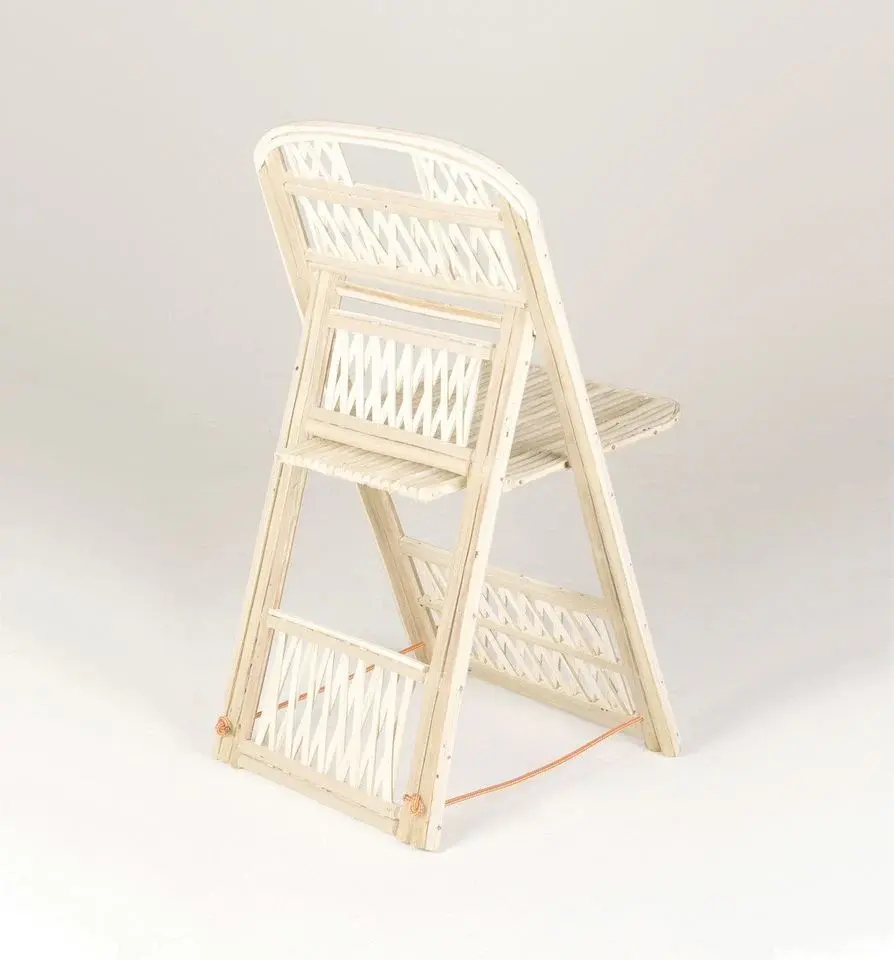 Memnon is a lightweight and durable foldable chair that can be easily transported and stored. The chair is crafted from a natural palm midrib during the annual pruning of the palm tree between September and December of each year.