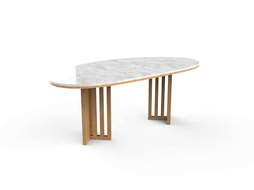 The Milky Table boasts a stunning marble top and sturdy wooden legs, perfect for any dining setting. The combination of materials ensures a long-lasting and visually appealing piece that will make any dining area stand out.