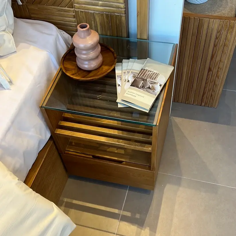 Introducing the best selling Mist Commode, the perfect combination of practicality and style. Use it as a night stand to keep your essentials close by, while adding a touch of elegance to your space. Upgrade your home with this must-have piece!