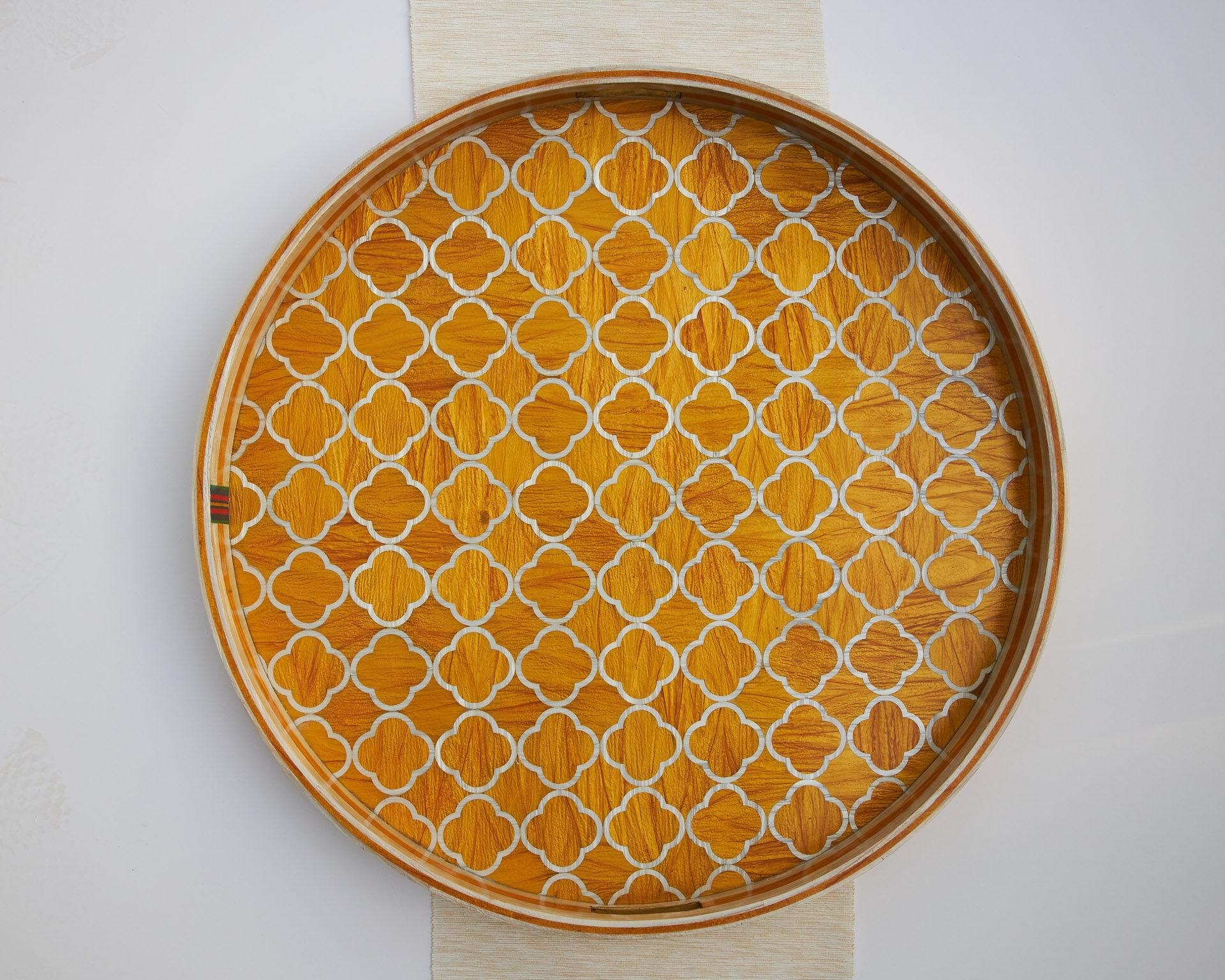 Highest quality of wood with glossy finish inlaid with mixture of mother of pearl and acrylic