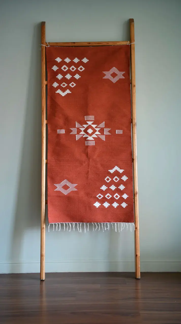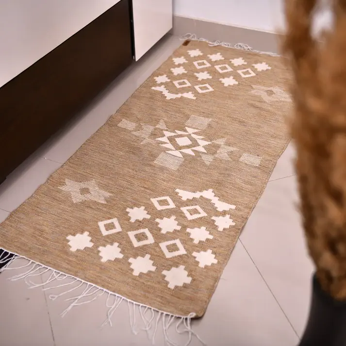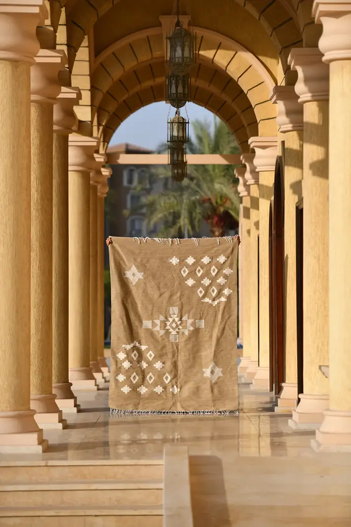 The main used shapes here are traditional motifs all weavers are born knowing, star, eye, and "Senoon" while giving it an arrangement that imitates the Islamic geometric patterns and forming a design with new values.