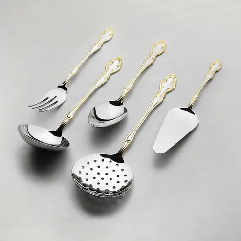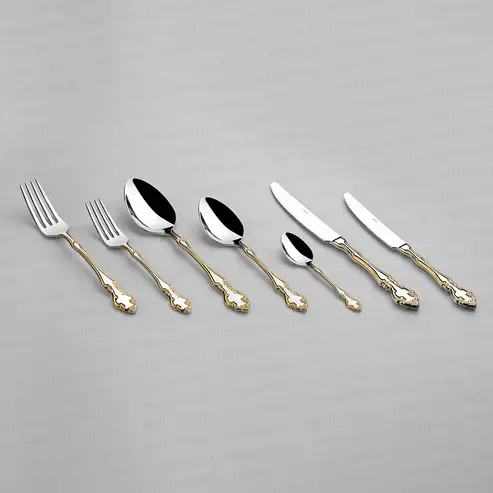 Brighten up your dining with our 89-piece stainless steel cutlery set. The golden decorated handles bring a touch of glam, perfect for fancy occasions. No more unmatching utensils - elevate your table with this stunning and useful set.