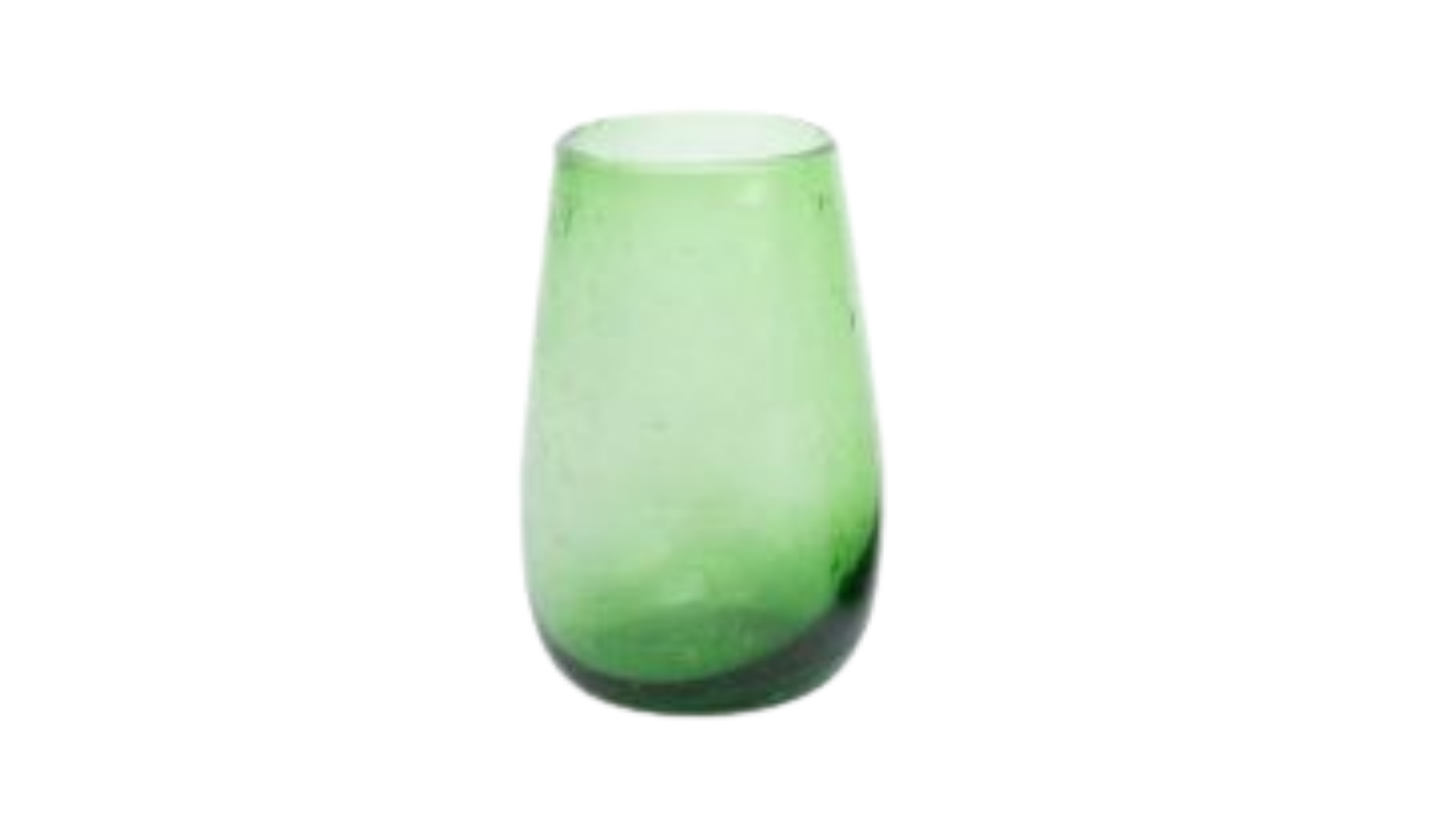 Today, Cairo’s glassblowers have taken a more sustainable approach to the craft. This is through collecting used bottles from around the city, washing, sorting, breaking and melting them in a 1500 degrees Celsius kiln and finally mouth blowing them into a variety of shapes to create imperfect forms with tiny bubbles that represent the Material’s once liquid state.