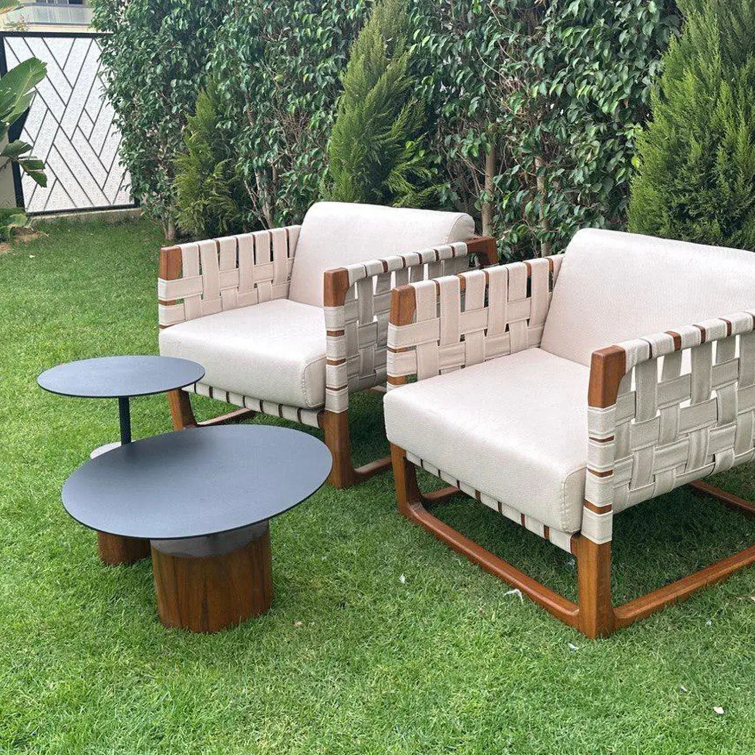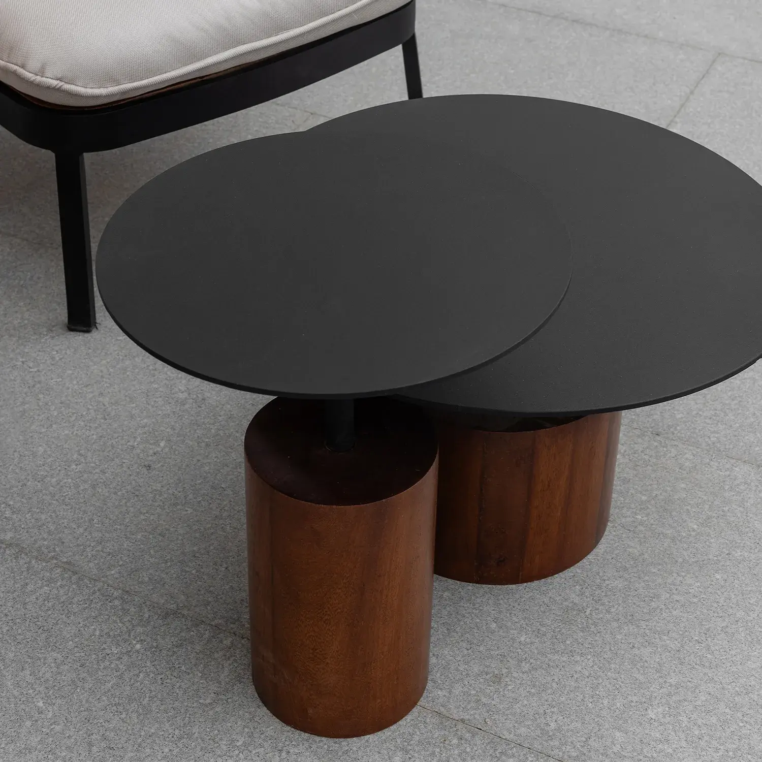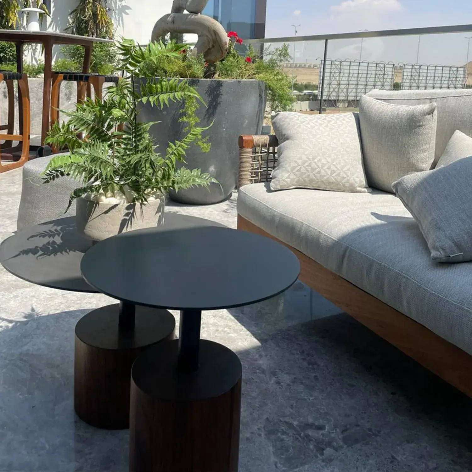 Strong teak bases meet sleek aluminum surfaces in the Nutch Set of Tables. Designed to layer together or stand apart, with finishes that adapt to your outdoor style.