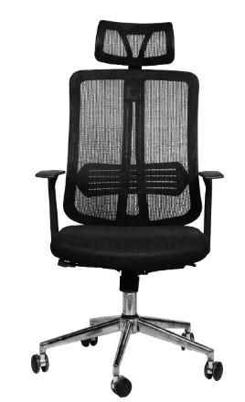 The OM is designed to provide essential support without compromising style. It features a full black mesh construction over the backrest, which maximizes ventilation and comfort for sustained use. The robust frame rests upon a gleaming chrome five-point star base fitted with quiet, durable casters for effortless maneuverability. The ergonomic contours of the back incorporate defined lumbar shaping, while the user maintains control over the seating position via pneumatic height adjustment and a responsive tilt mechanism. Two configurations are available: a high-back model offering an integrated mesh headrest for full spinal alignment, and a mid-back task version for streamlined, focused work.