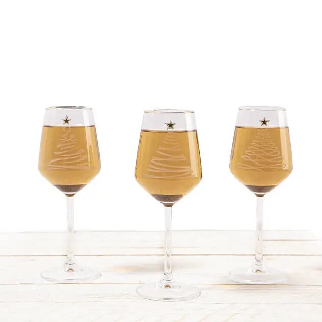 Pasabahce Allegra 6 Wine Glasses Set - Frosted Christmas Tree & Gold Detail