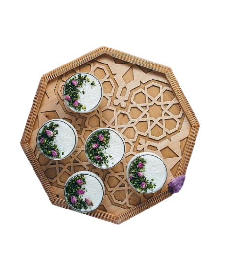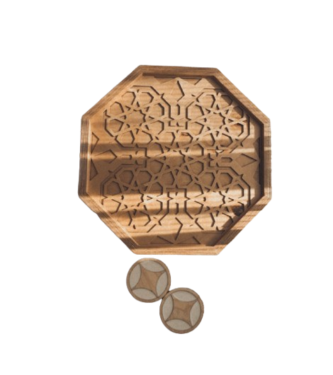 A Multi-Functional Serving tray. Inspired from Islamic art (Mamluk Era) .. A statement piece that will add sense of warmness and elegance to your home.Hang it on your wall after you finish serving to add more elegance. Made from finest woods . Well isolated & None absorbent.