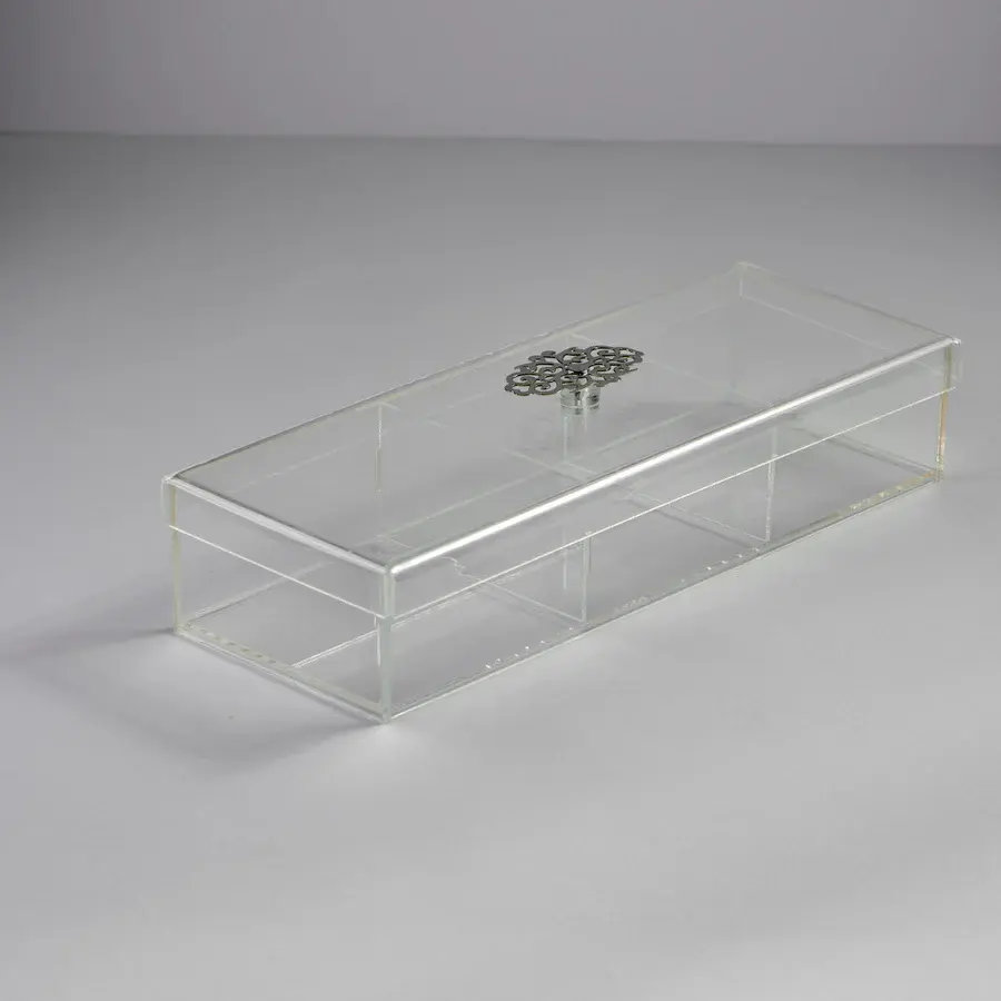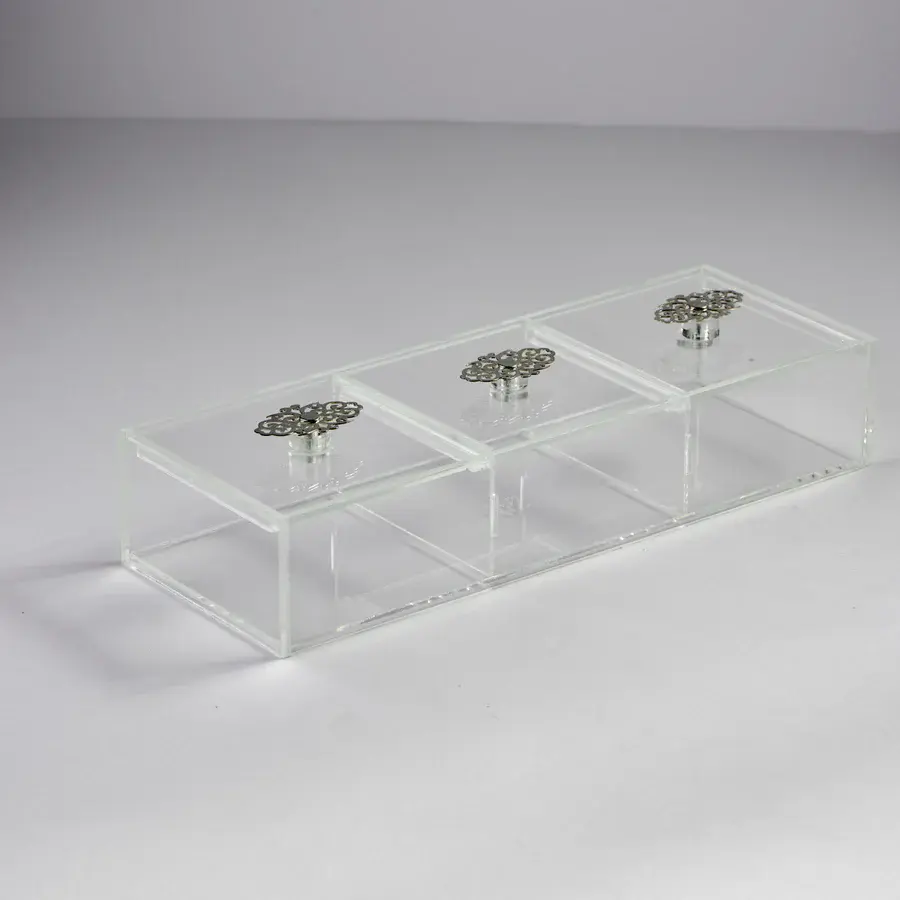 The Plated Large 3-Compartment Box—Silver by Zee Designs is an elegant serving and storage solution that blends high-shine glamor with everyday practicality. Designed with a clear Plexiglas base and a silver-plated knob, this piece is available in two styles: one with a single unified cover and another with three separate lids for flexible access. Its bold, reflective finish makes it a stunning addition to Ramadan tables, coffee corners, or event settings.