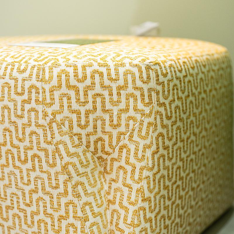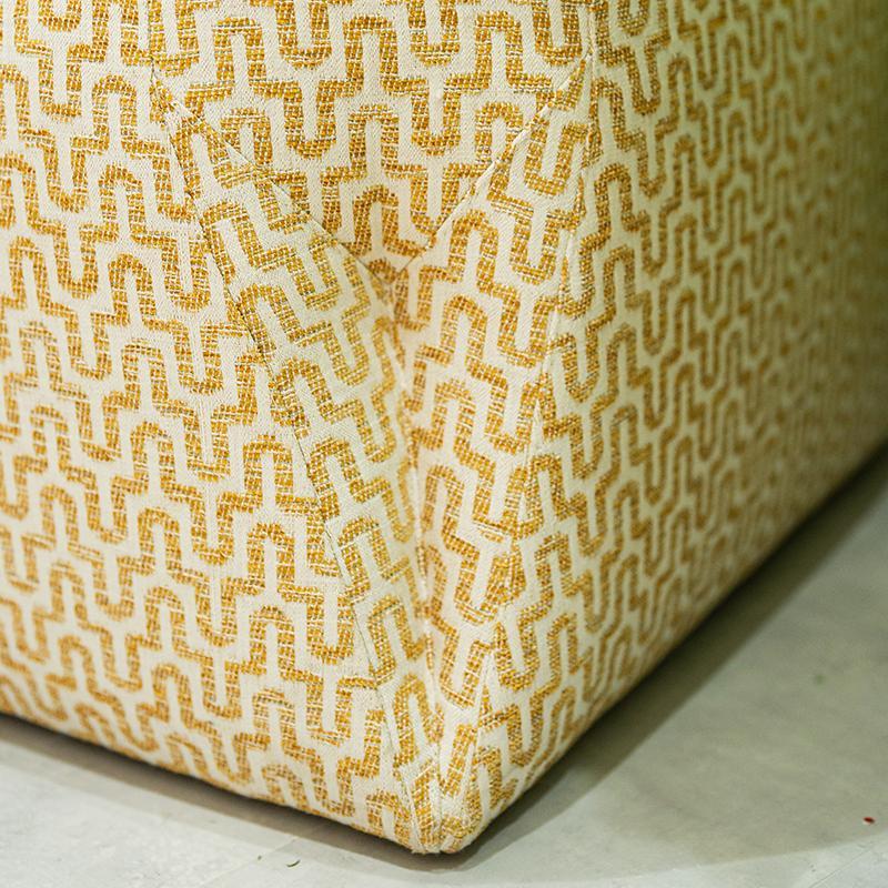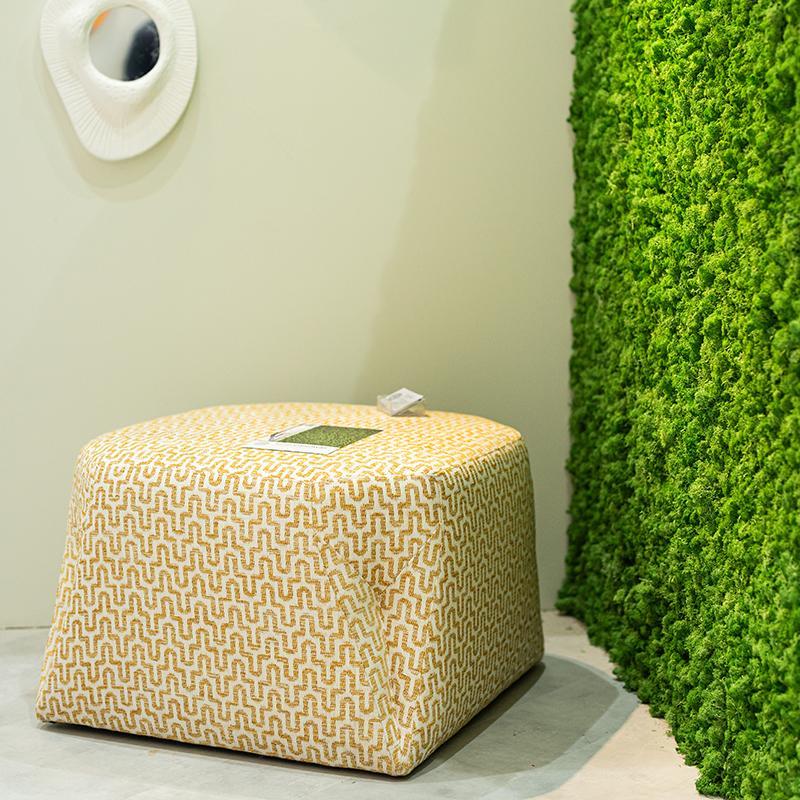 Upholstered pouf in fabric with an origami-inspired design—samples to be approved.