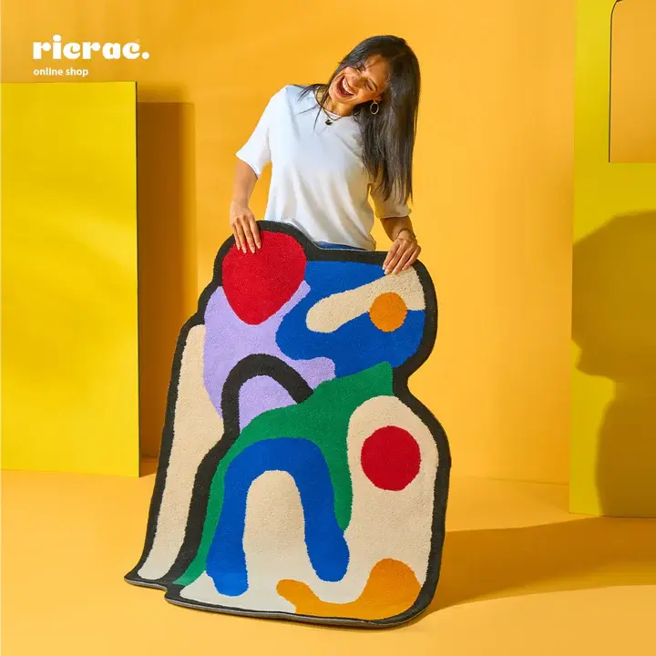 A hand tufted rug with a unique shape and abstract pattern adds artistic flair and character to any room, blending style with comfort effortlessly.