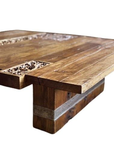 Rahala is derived from recycled wooden railway sleepers in a train station, complemented by copper. An uncountable number of foot travelers have walked through these railway sleepers from all over the world. This shape-shifter piece has been constructed with both functionality and style in mind.