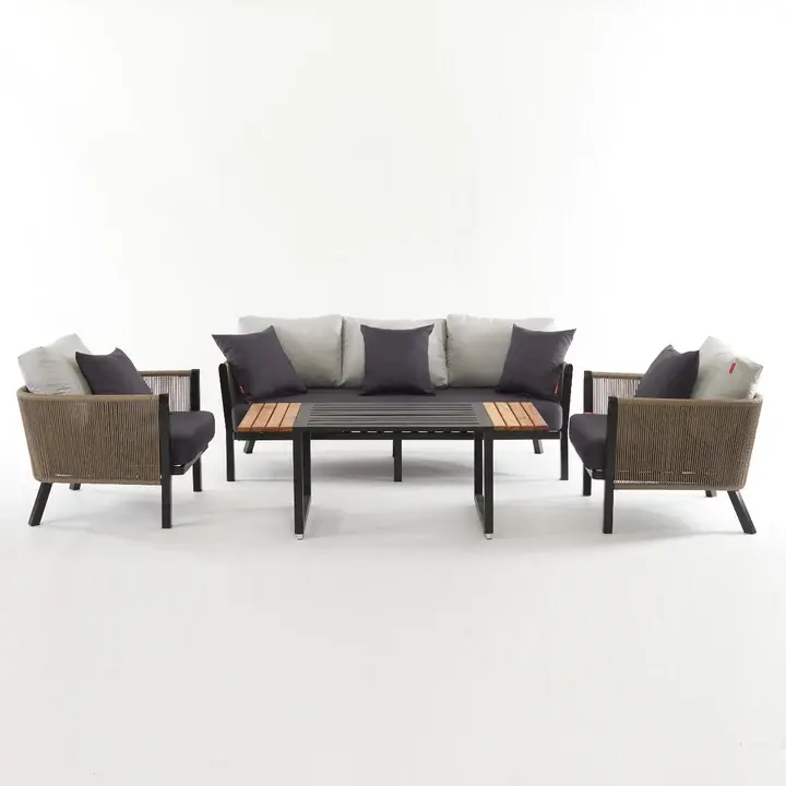 This 4 Pieces Patio Set Deep Sectional Set with Black cushions offers both contemporary design and durability. This set is the perfect match for every patio and will give your backyard the class and elegance for outdoor time. This collection combines luxury, beauty, comfort, and an affordable price. This sectional set its a versatile option to your outdoors, it can seats up to 6 people and includes 1 sofa, 2 ottoman and 1 coffee table. The set includes cushions with water and dust resistance removable covers for washing. This product is primarily designed for outdoor purposes but can also be used indoors giving your home a modern touch. Durable and well-designed construction are key components of this great patio set.
