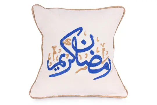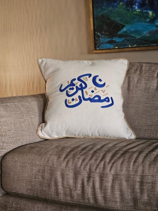 Ramadan Kareem" - Hand-Embroidered Cushion with Arabic Calligraphy
