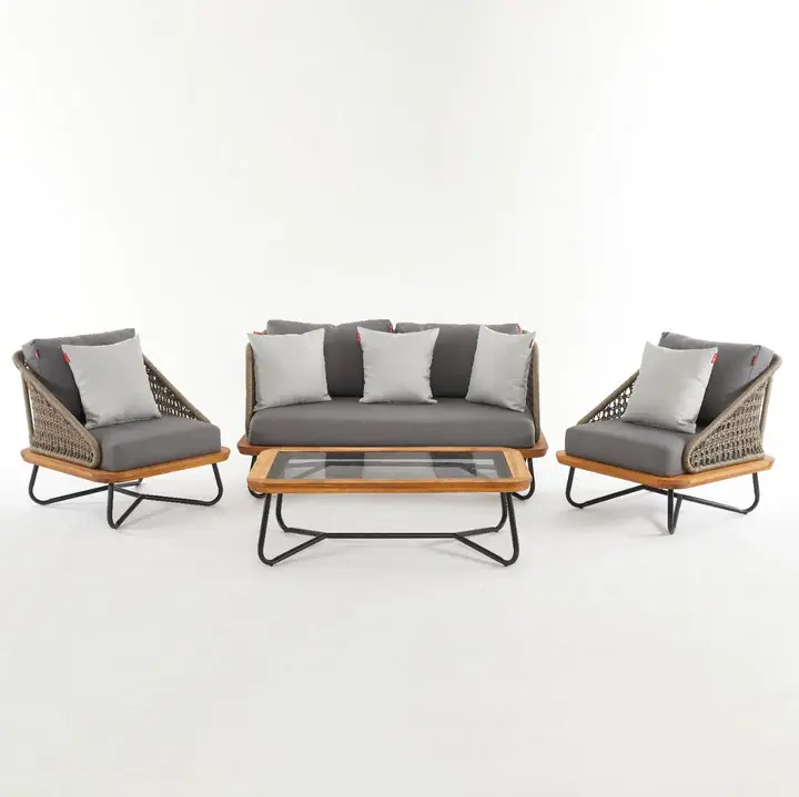 Material: Frame: Wood & Metal- Cushions: High Quality Outdoors Fabric