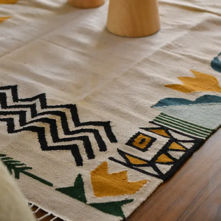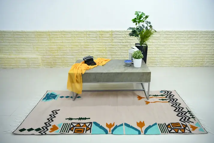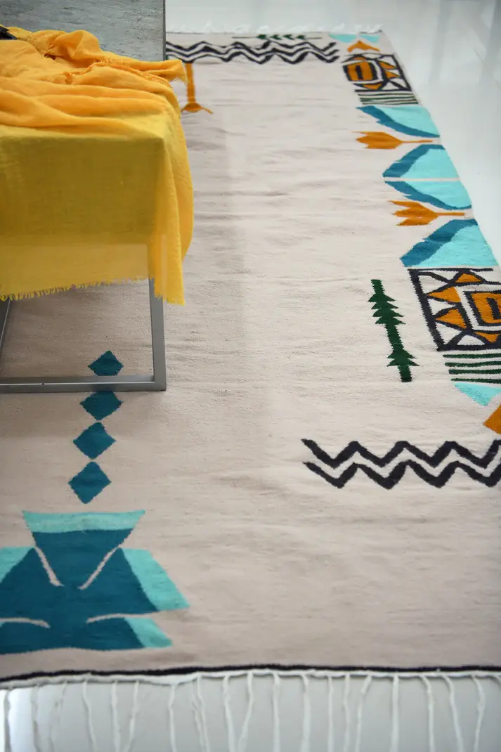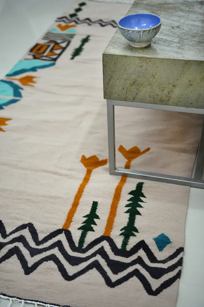 Introducing the Reefy Rug from our Masriyat collection. Inspired by the fertile lands of ancient Egypt, this rug is a tribute to the lush flora that once thrived along the Nile. The design captures the essence of prosperity and life's abundance, with motifs reflecting the river's water, simple houses, waterwheels, and the elegant lotus flower. Each knot is a testament to the weaver's skill and dedication, creating a piece that not only adorns your home but also tells a story of a rich cultural heritage. Bring a piece of ancient Egypt into your space.