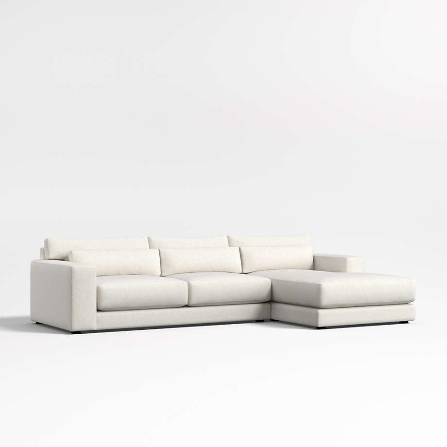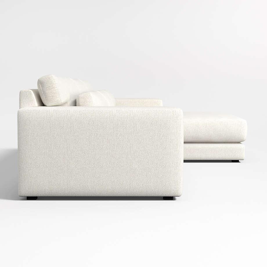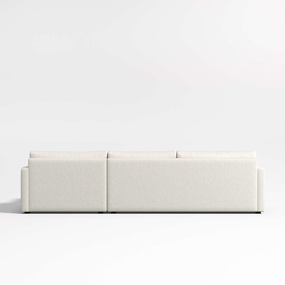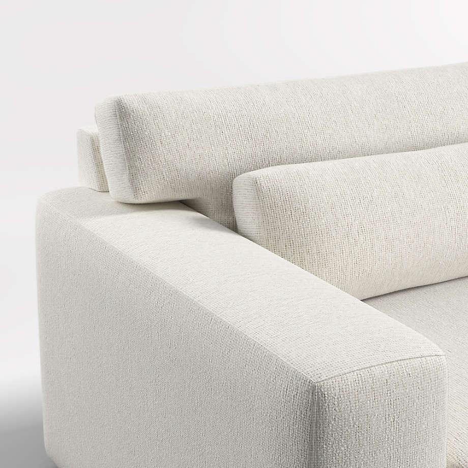 Years in the making, we pulled in customer-favorite design elements to create our Retreat sectional, a plush new hangout spot with a clean, modern look. The combination of right-arm chaise and left-arm sofa has soft-yet-supportive seat cushions and lumbar pillows that remove for a deeper, more loungey sit. Extra-wide arms provide a spot to park a book, tablet or bowl of popcorn, and T-shaped back cushions snuggle in nicely to keep the look clean and current. Textural and forgiving, the upholstery fabric we love is Serene—a beach-cleanable, family-friendly sculpted weave that reads timeless and contemporary.
