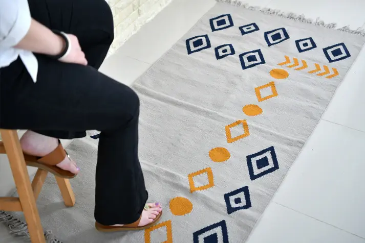 When you rotate a square or a rectangle to get a rhombus shape, although you change the form of the body, you don’t change its core. Representing inside each rhombus a core of smaller rhombus is to prompt the Search for the core of your beliefs and values no matter how your looks change.