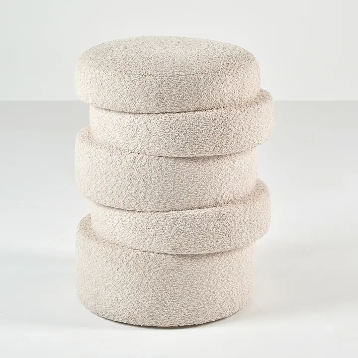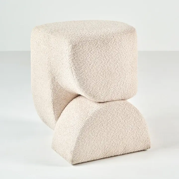 A set of abstract-shaped pouffes adds modern artistry and visual interest to any space, offering both functional seating and decorative flair.