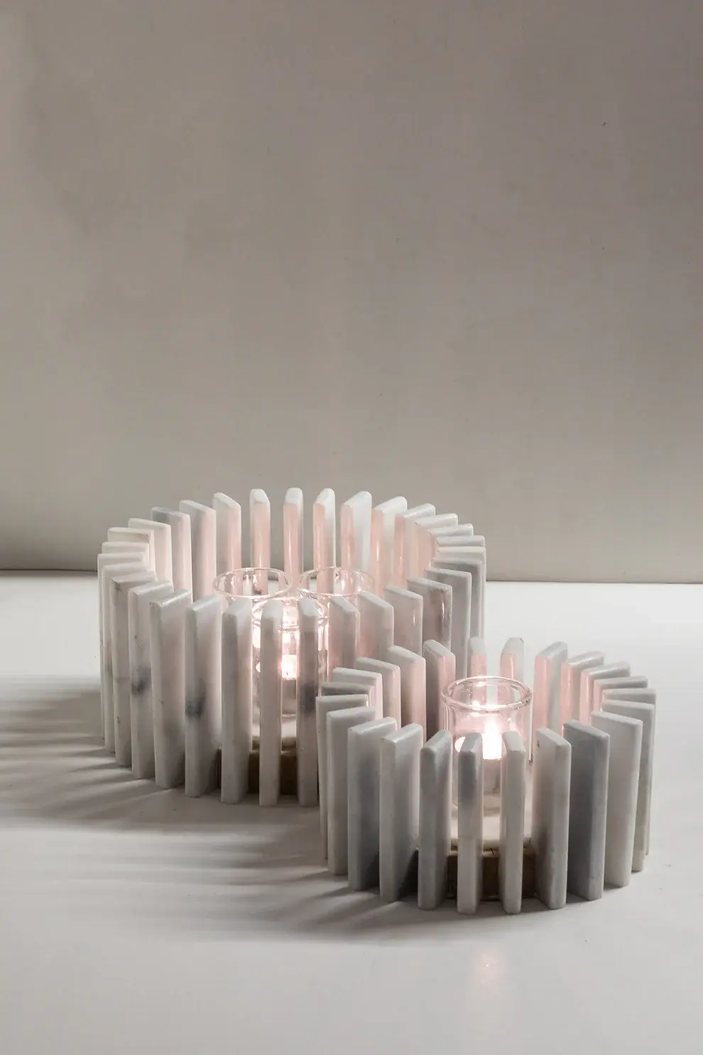 Create a warm and inviting ambiance with this elegant round natural marble candle holder.