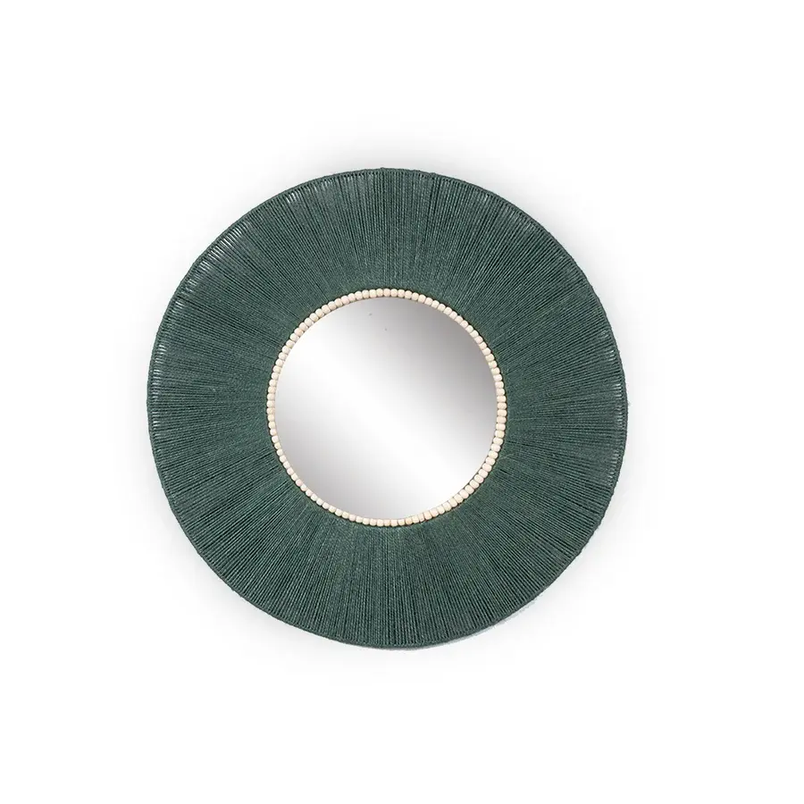 This beautifully crafted round mirror features a sturdy wooden beads that adds a touch of warmth and elegance to any space. Its sleek design and high-quality materials make it the perfect addition to your home decor.