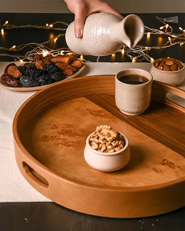 Use a soft, clean cloth, lukewarm water, and a few drops of mild dishwashing liquid to gently wipe your wooden tray clean. Once done, place where it can get sufficient air to dry.