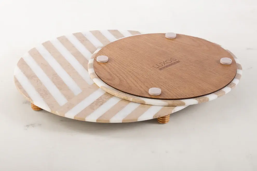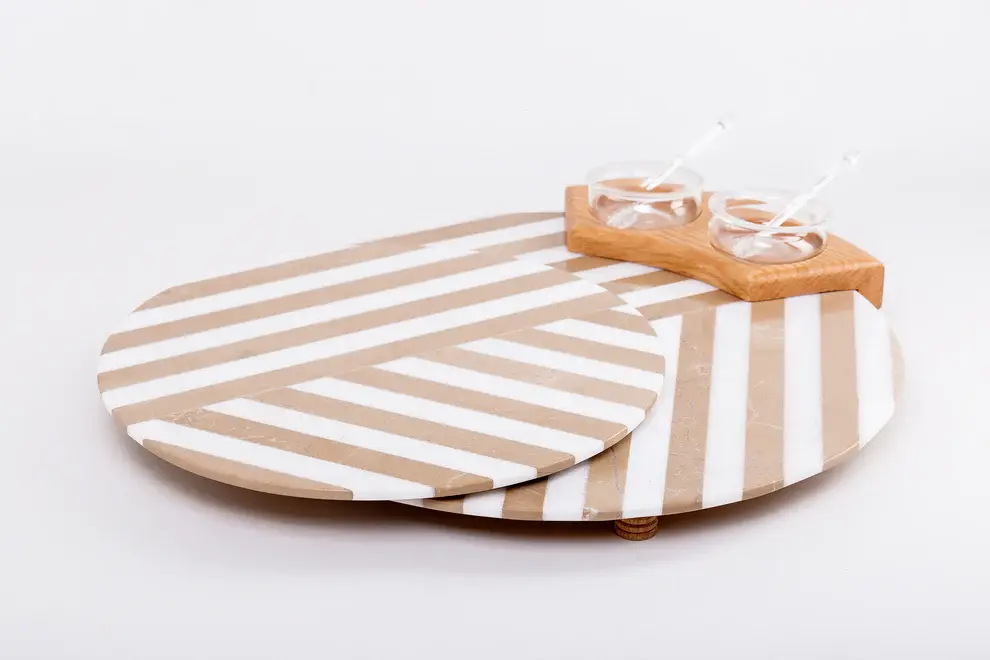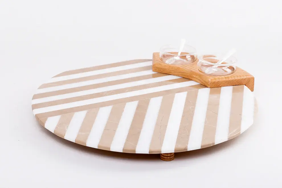 SERVING TRAY MADE OF THE FINEST EUROPEAN MARBLE AND WOOD FOR MULTIPLE PURPOSES, TREATED WITH EPOXY AGAINST NATURAL FACTORS