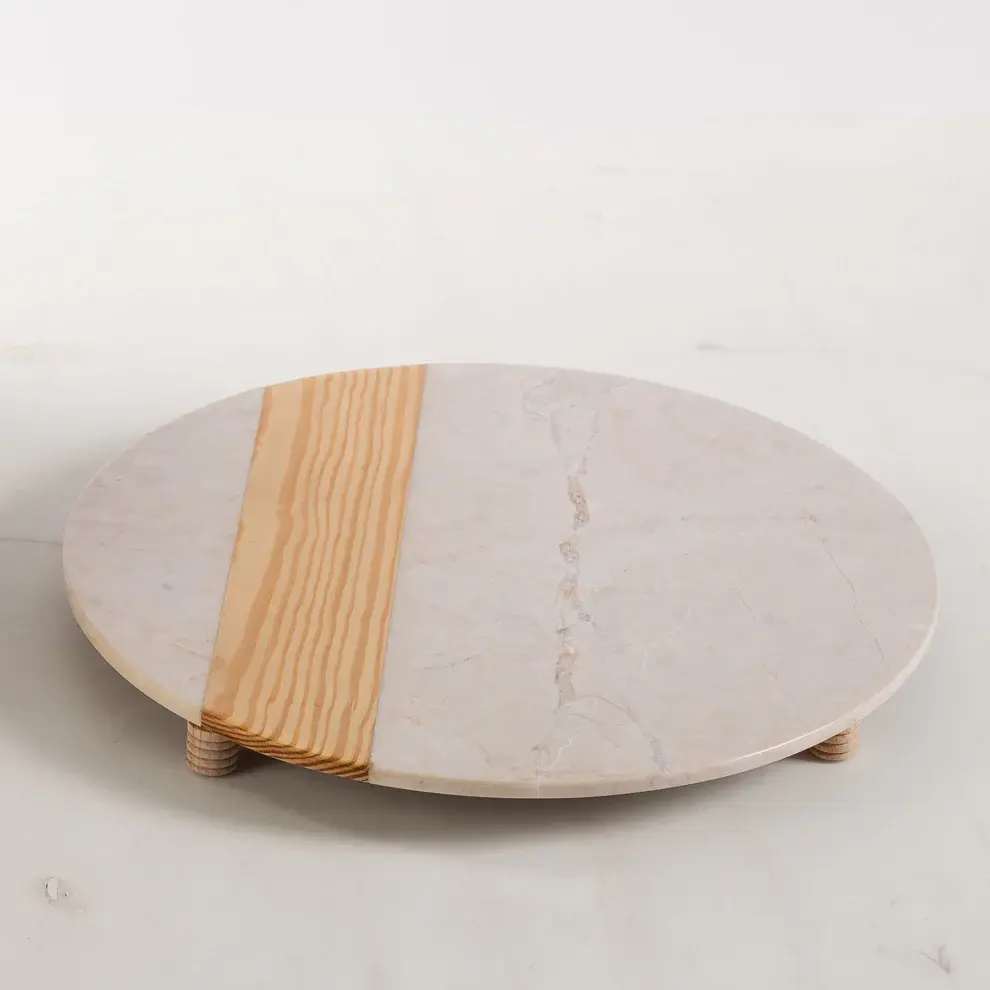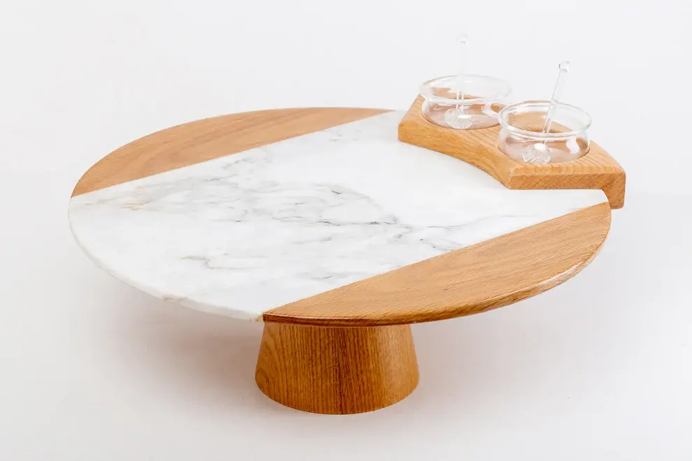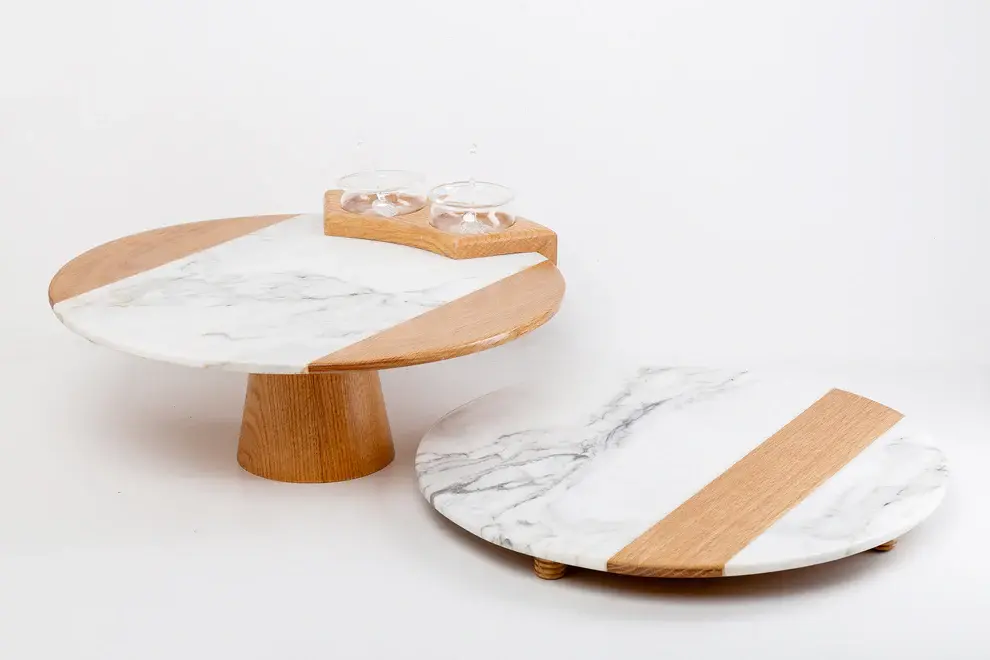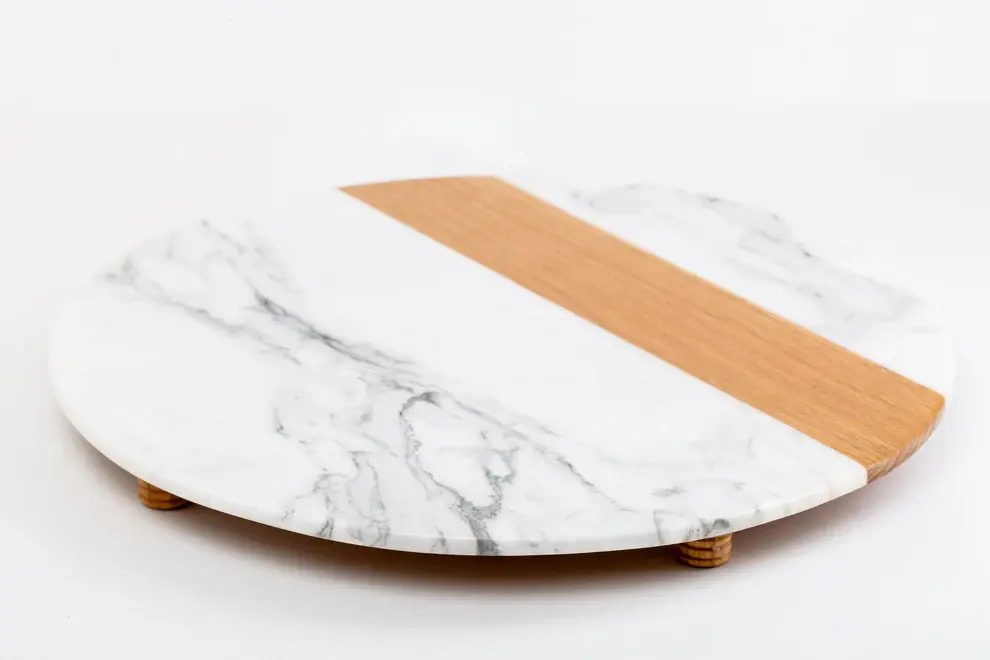 SERVING TRAY MADE OF THE FINEST EUROPEAN MARBLE AND WOOD FOR MULTIPLE PURPOSES, TREATED WITH EPOXY AGAINST NATURAL FACTORS