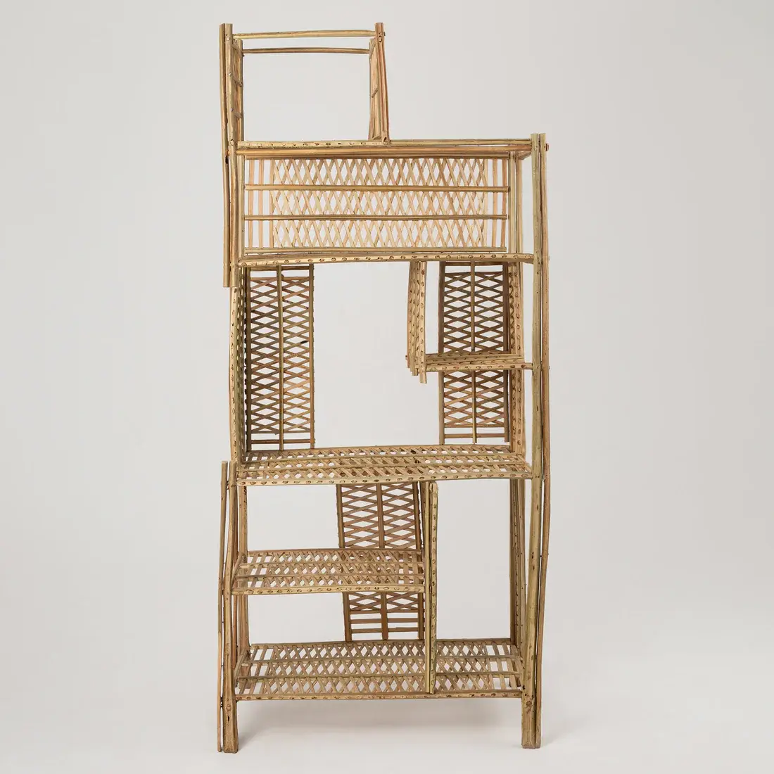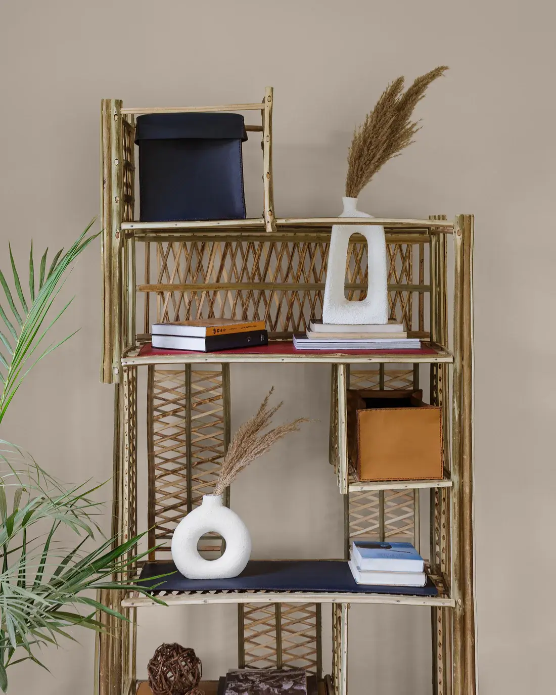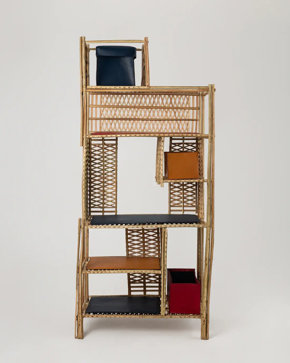 Type of material: Shades shelving unit is a blend of natural beauty and artistic flair. Crafted from palm reeds, its design reflects the captivating colors found in palm shadows, resulting in a captivating mix of irregular shapes and random patterns. The product could be complemented by either wicker or genuine leather shelves and boxes in three vibrant colors inspired by Mondrian’s iconic palette—red, blue, and yellow—this piece is a harmonious combination of organic charm and modern lines. Dimensions: 40 x 88 x 190 cm Delivery Time : 1 week to 1 month according to availabilityAdd your review
