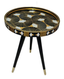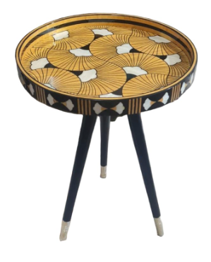 Natural wood table covered with mother-of-pearl Beech wood legs with brass heels.