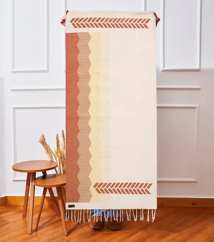 Soumak demonstrates the Tadreega technique, where a shade of thread is gradually increased or decreased, creating a stunning gradient effect. This technique showcases the fluency of geometry in kilim weaving, as colors blend seamlessly to form a captivating pattern. The Soumak rug is a testament to the craftsmanship and precision of kilim artisans, highlighting the beauty of traditional techniques.